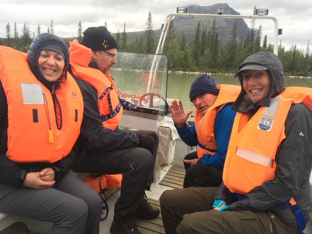 Also war ein wenig Zeit totschlagen angesagt. Nach und nach kamen weitere Hiker dazu, und relativ pünktlich war dann das Tuckern des Außenborders unserer Kungsleden-Fähre zu hören.