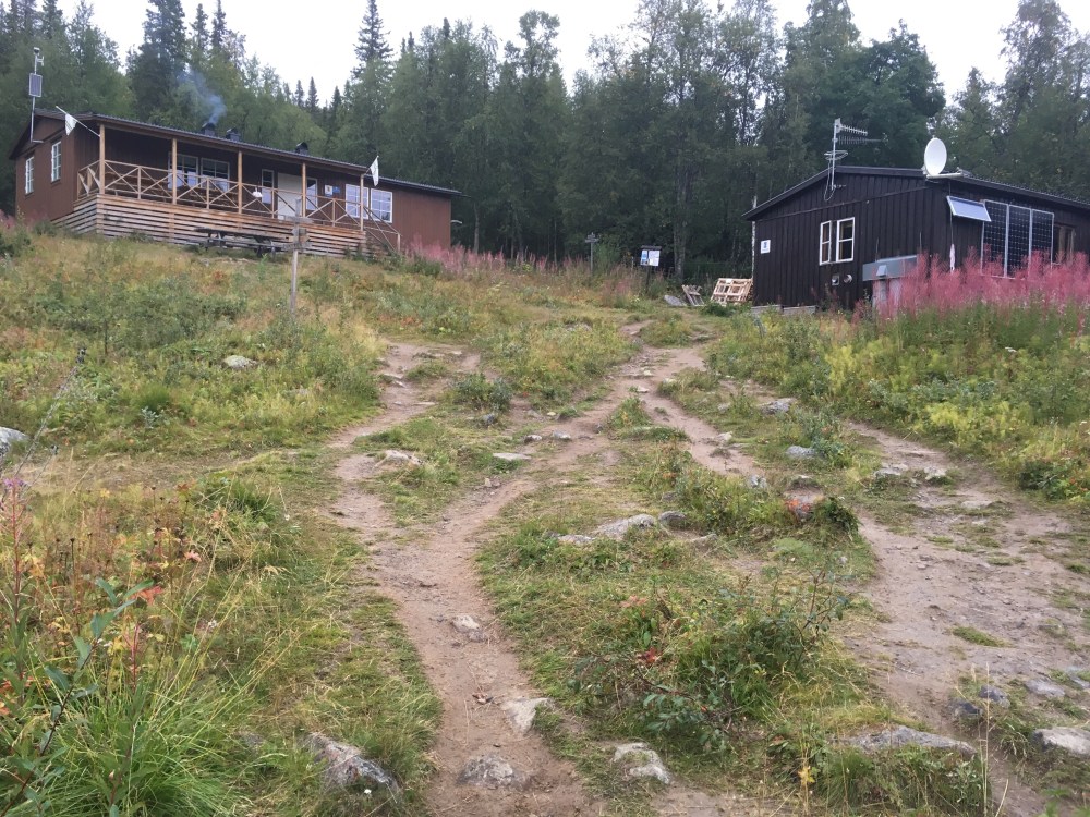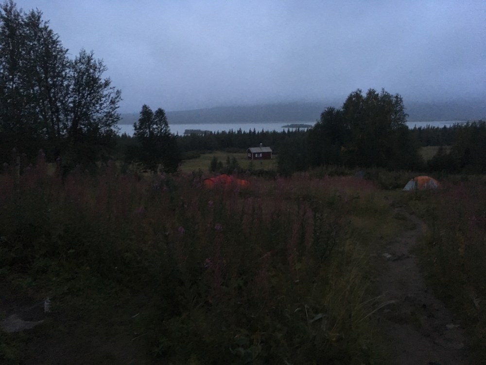 Auf der anderen Seite angekommen war’s dann nur noch 1km Fußmarsch bis zur Aktse-Stuga, Zeltaufbau statt 6-Bettzimmer und ein schneller Einkauf im Stuga-Shop folgten.