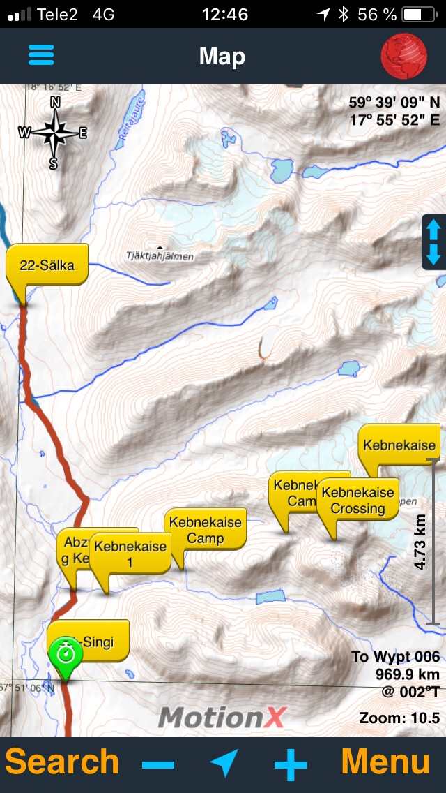 Die Kulisse des Hochfjälls gibt wirklich alles, und irgendwann können wir auch einen Blick auf den Kebnekaise erhaschen. Sieht so nah aus, und scheint trotzdem eine andere Welt zu sein: Der Gletscher ist zu erkennen, weisse Schneefelder, wunderschön!